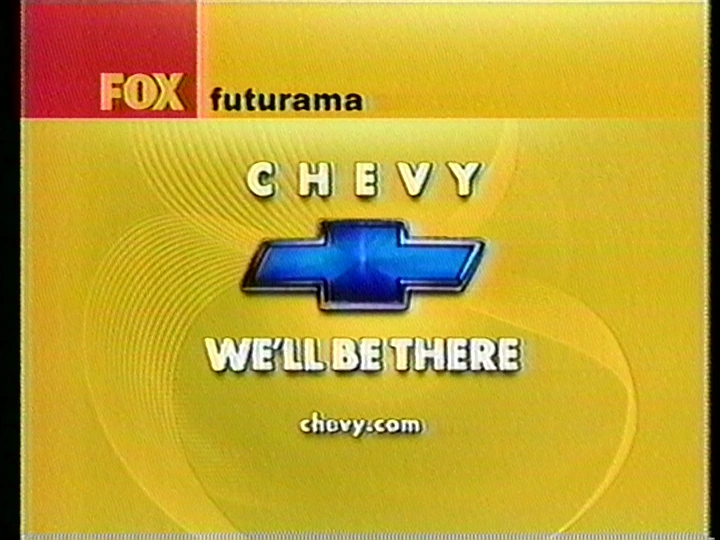Announcer: [This program] is brought to you by the heartbeat of America, today's Chevrolet. Earliest known use on October 16, 1986. Aired alongside the L'Oreal sponsor and the BVD sponsor from the same day. Latest known use on October 17, 1986. Aired alongside the General Foods sponsor from the same day. |